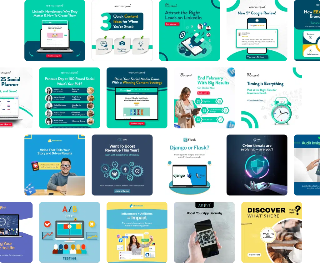 - How does 100 Pound Social work?We make professional content marketing easy, affordable, and hands-off. After choosing a plan and completing a short onboarding process, our team will create content tailored to your brand and audience. We also offer LinkedIn lead generation, blog, and newsletter writing. You’ll review and approve everything before it goes live—no contracts, no hassle.