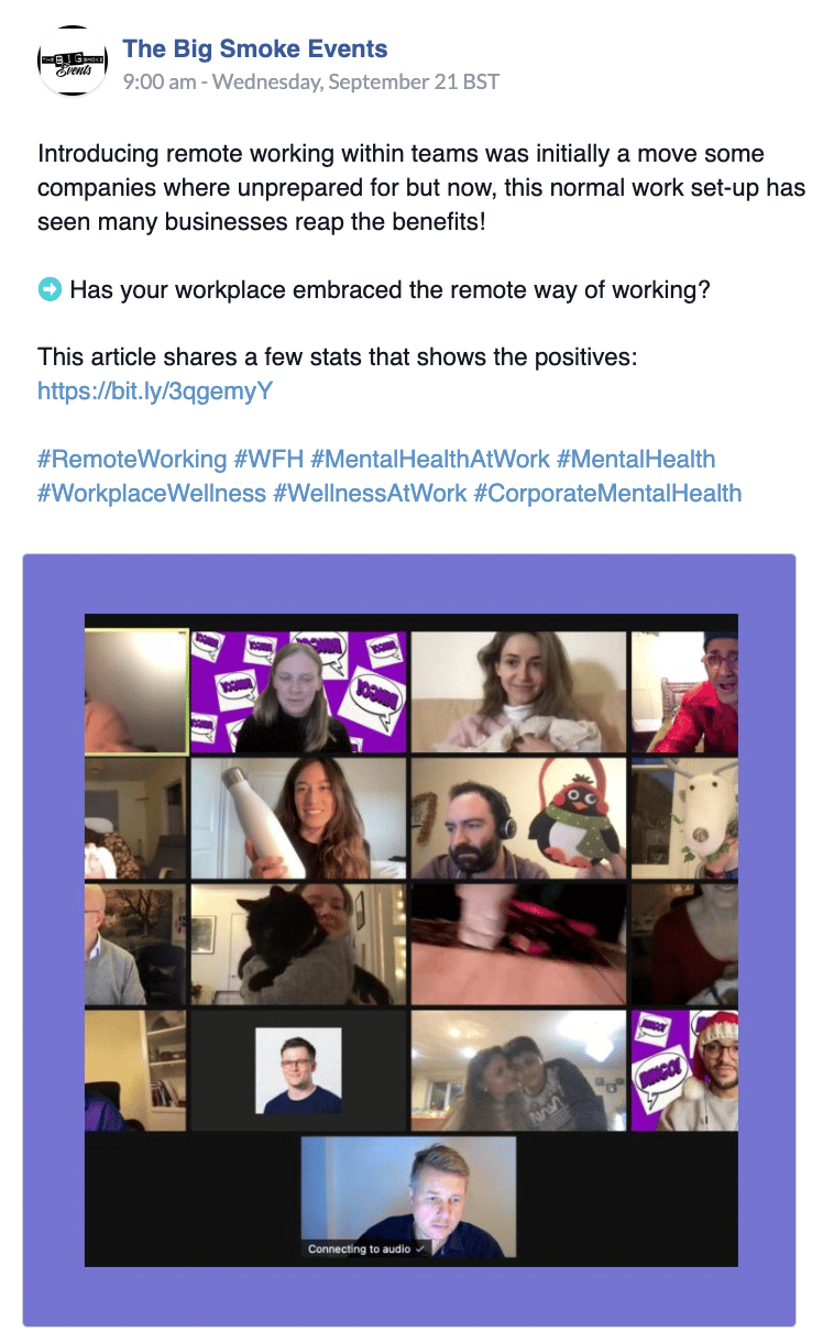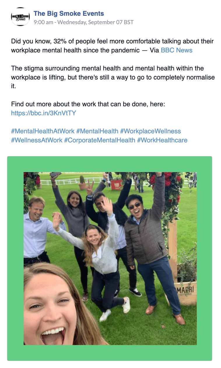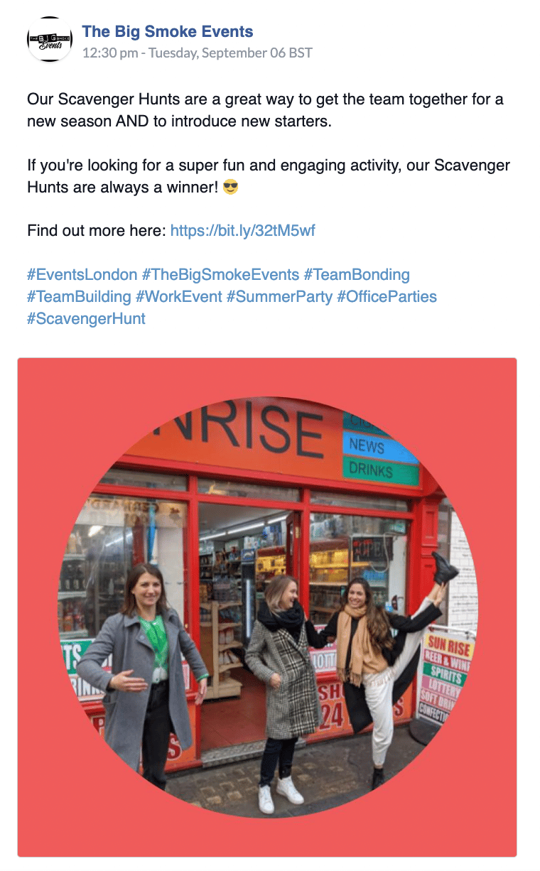 The Big Smoke Events signed up for our Posts Plan, opting for three posts per week to the company’s Facebook, Company LinkedIn, and Instagram pages.