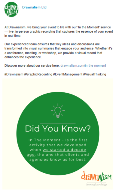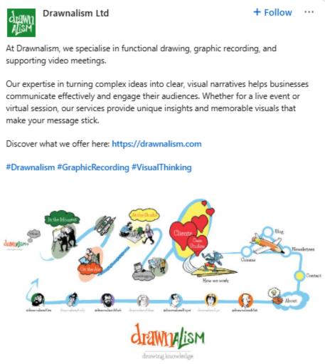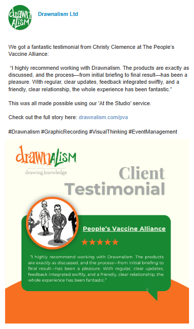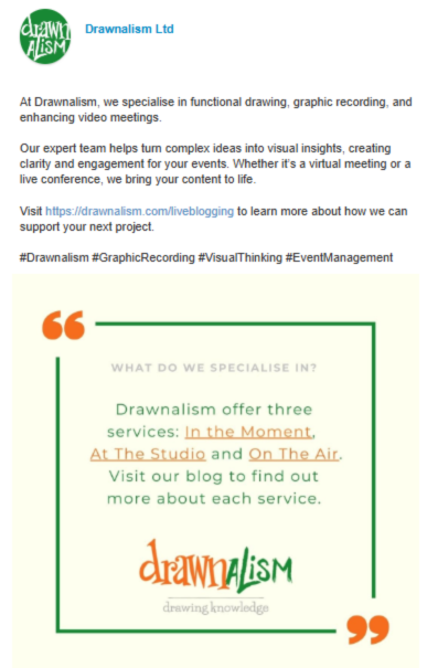 Drawnalism joined us in January 2023 on the £100 Posts Plan—it includes three posts per week to the company’s LinkedIn page.