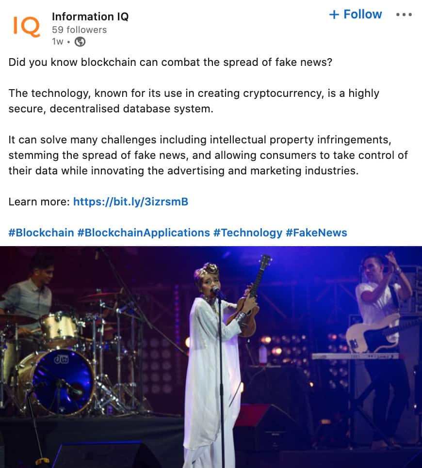 Info IQ is on the Posts Plan, with regular posts each week to the company’s LinkedIn and Twitter profiles.