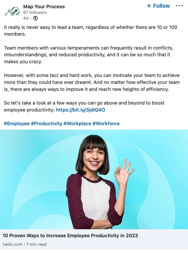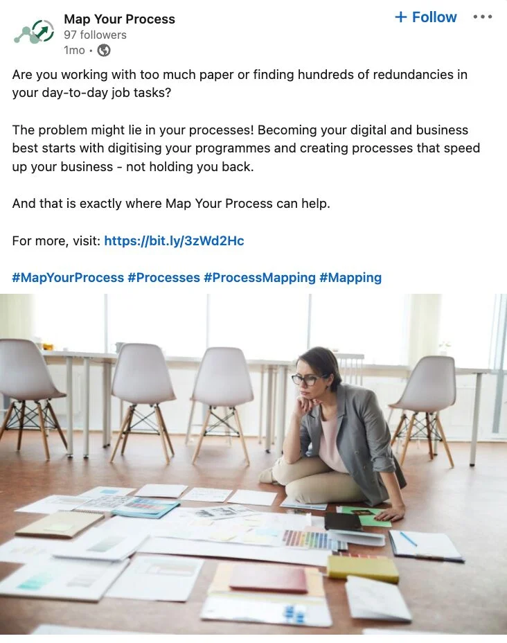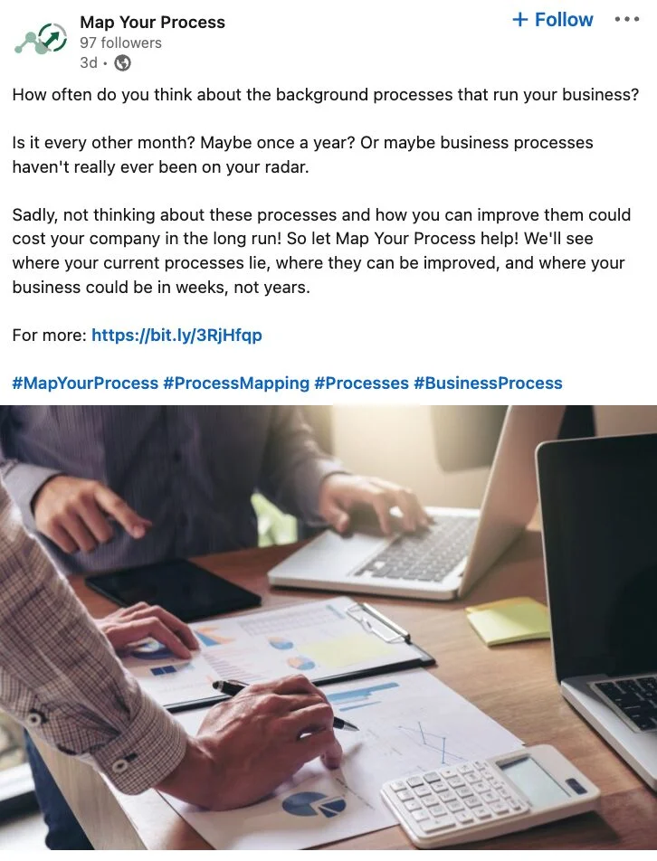 Map Your Process signed up for our Posts Plan, featuring regular posts to the company’s Facebook, Company LinkedIn, and Twitter pages.