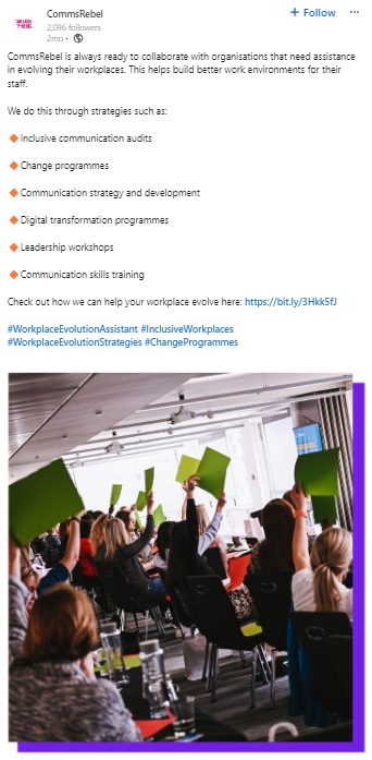 Now 100 Pound Social is covering a broad range of relevant topics on CommsRebel’s social media channels, Dharini said, “It’s really maximising what we offer and gives our followers a nice variety of content.”