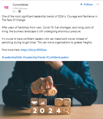 After closely monitoring the CommsRebel LinkedIn page, she reports that within the last 12 months: “We’ve had about 871 new followers, which is about a 43% increase; it might be 45%, almost 50%.”