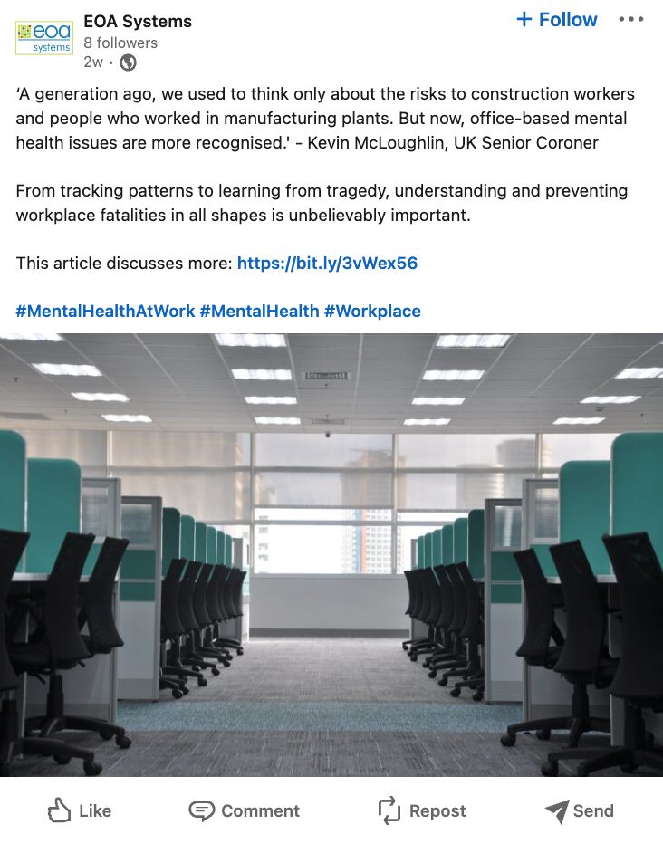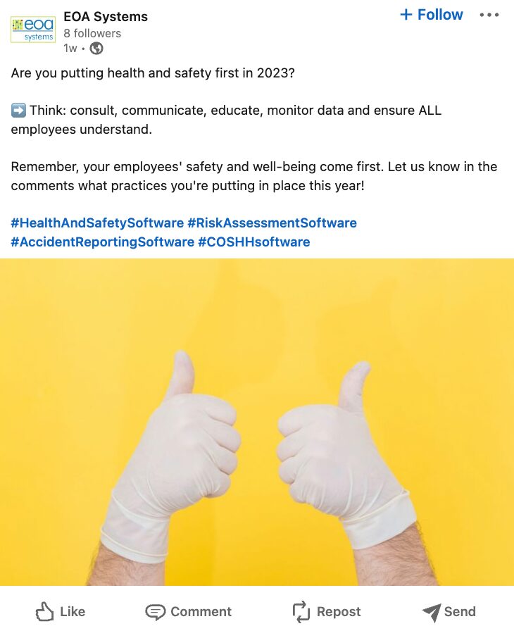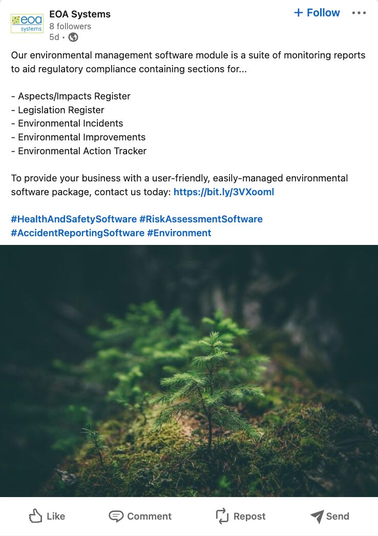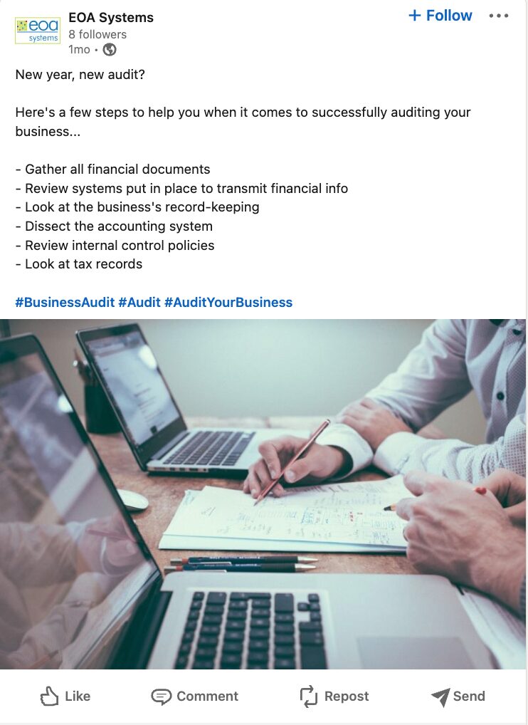 EOA Systems signed up for our Posts Plan, featuring regular posts to the company’s Facebook and Company LinkedIn pages.