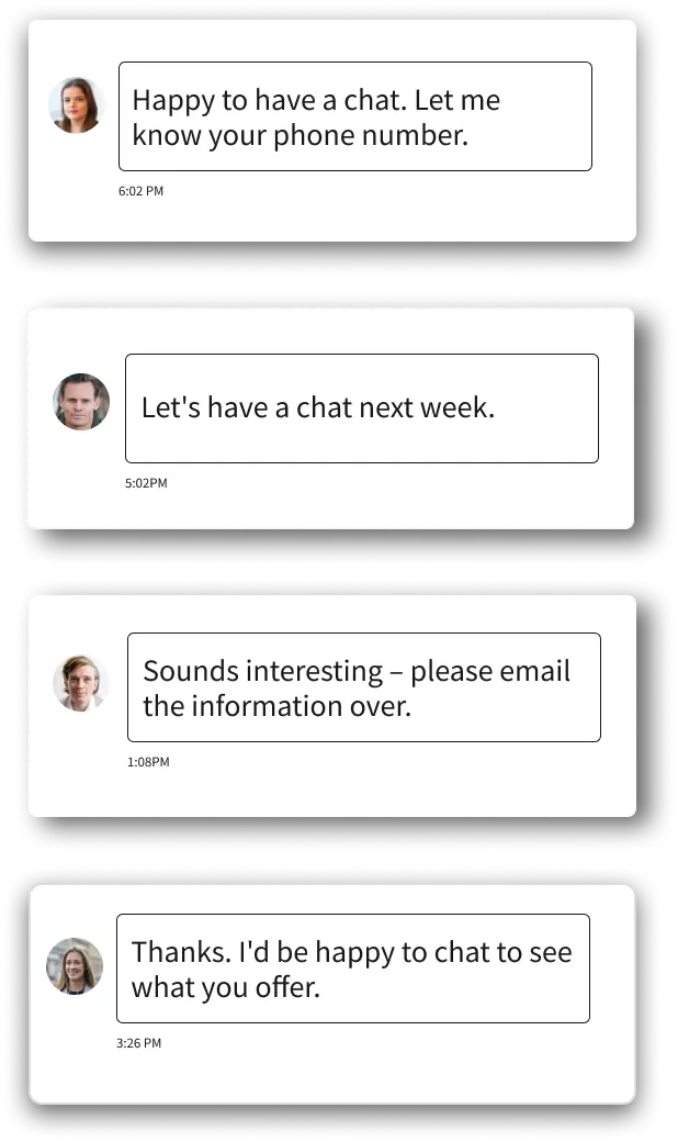 We craft a clear 4-part message sequence that generates positive replies